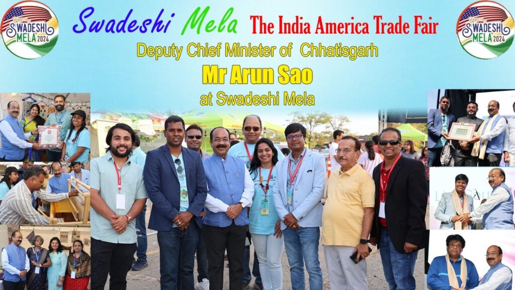 A key highlight of the event was the participation of Mr. Arun Sao, Deputy Chief Minister of Chhattisgarh, who graced the occasion as the chief guest. During his visit, Mr. Sao interacted with Chhattisgarhi vendors, including representatives from Bastar Adimjati Khadi Gramodyog Sangh, appreciating their contributions in promoting the state’s rich traditional crafts. He also engaged with Congressman Raja Krishnamoorthy and the event’s key organizers, including NACHA Founders Deepali Saraogi and Ganesh Kar, in furthering Indo-American cultural ties. Mr. Sao has interacted with 20 NRI Community NACHA (North America Chhattisgarh Association) state and national executive and discussed the engagement with Govt with NRI Community. Mr. Sao has ensured that the Govt will take a good initiative for NRI so more and more NRI Community will come forward to support the state program. He also said that current Govt again worked to start the NRI Division which was paused due to conflict with appointment of coordinator.
